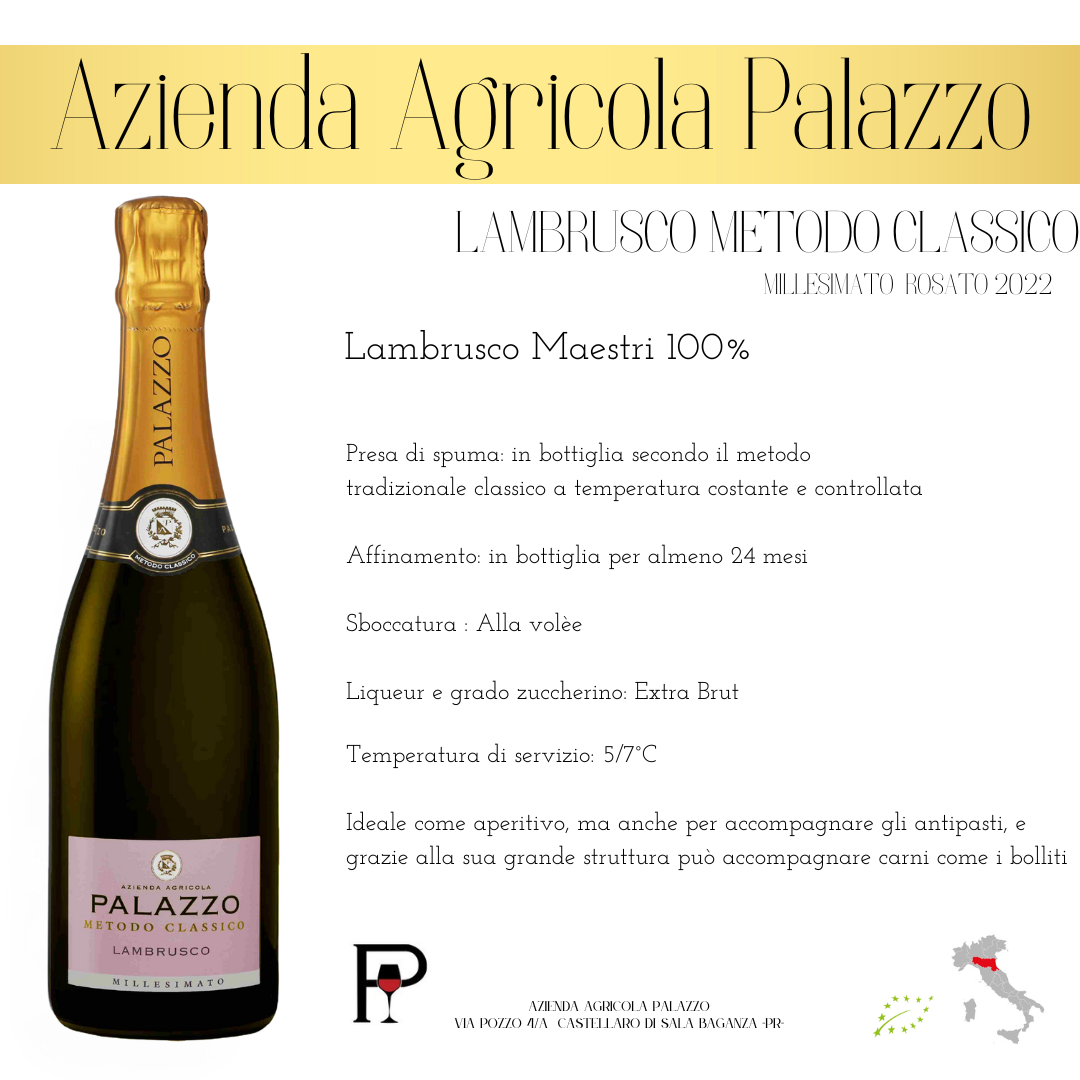 Il Lambrusco Metodo Classico Rosé dell’Azienda Agricola Palazzo è una